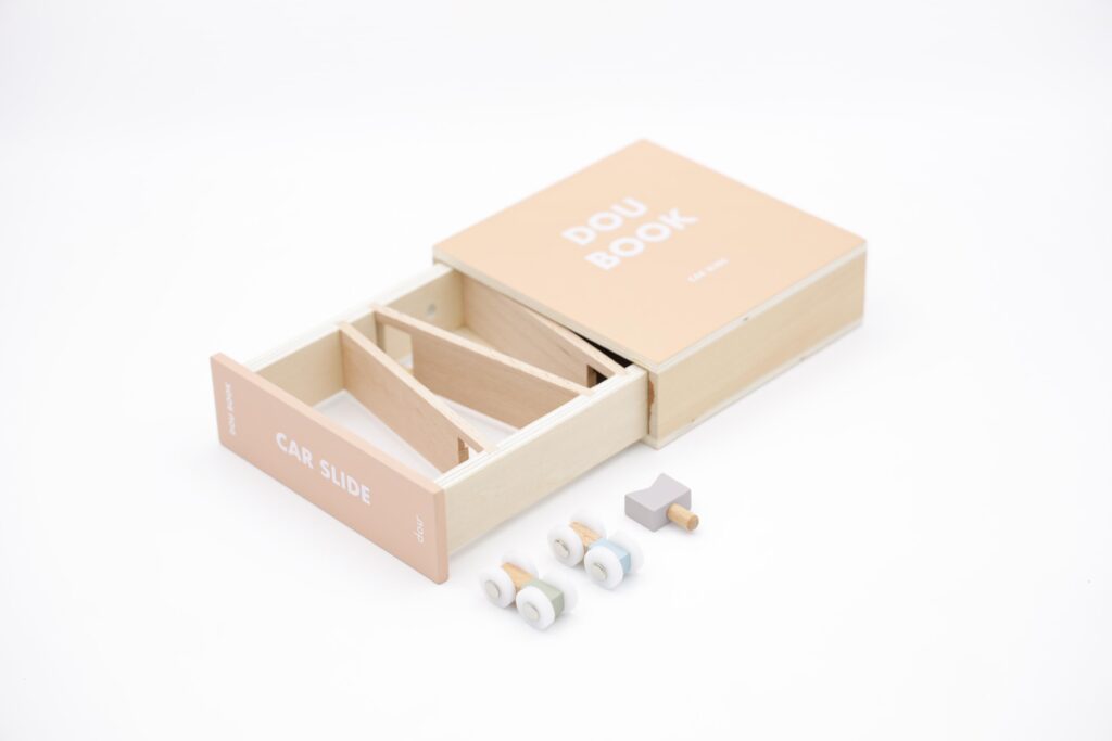 DOU BOOK car slide は、本のかたちをした箱を開くと、