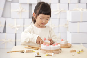 今日から試すのは、3手順・役割・置き方の三つだけ。トレー1枚の小さな“舞台”が、家族の会話を増やし、友達との協力や交渉も自然に生みます。飾って終わりではなく、明日も続く遊びへ。木のおもちゃと一緒に、暮らしにやさしい時間を。