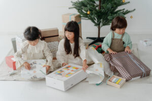 クリスマスの朝、ラッピングを開けて