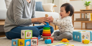 、1歳前後は積み木/車スロープ/シロフォンなど、発達段階に合う提案をさせていただきます。